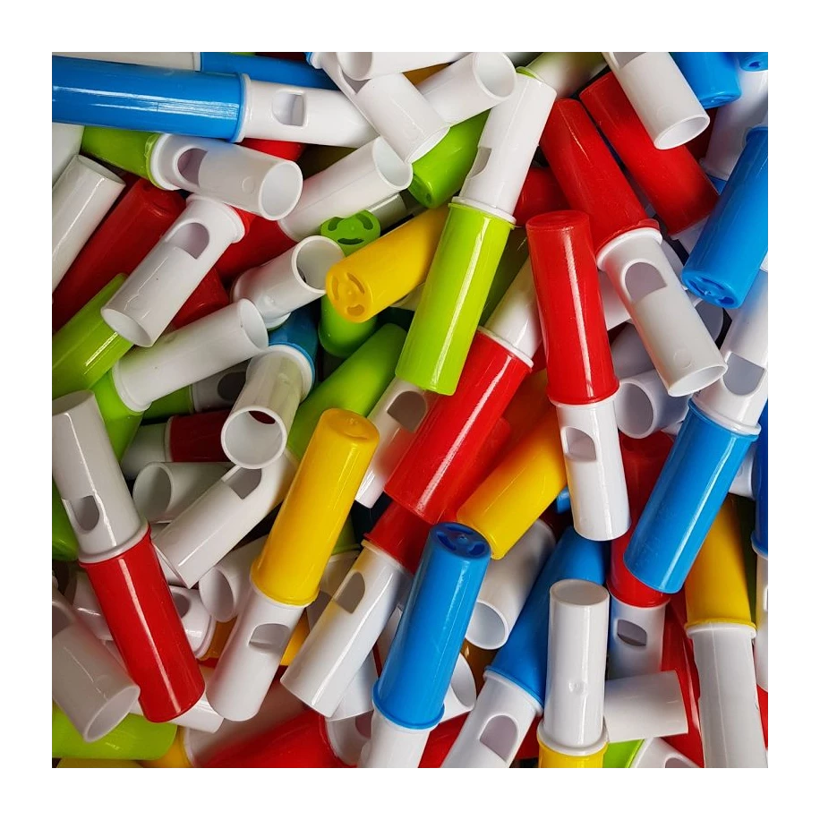 Ce véritable sifflet en plastique contient un délicieux bonbon dextrose fruité à sucer ou à croquer.